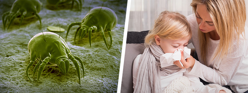 Menurut Melanie Carver, naib presiden kesihatan masyarakat di Asthma and Allergy Foundation of America (AAFA), “Bahan buangan hama boleh menyebabkan alahan dan asma". Manakala menurut American Lung Association, simptom-simptomnya merangkumi gatal mata dan hidung berair sehingga tindak balas alahan yang teruk seperti kesukaran bernafas dan tidur.