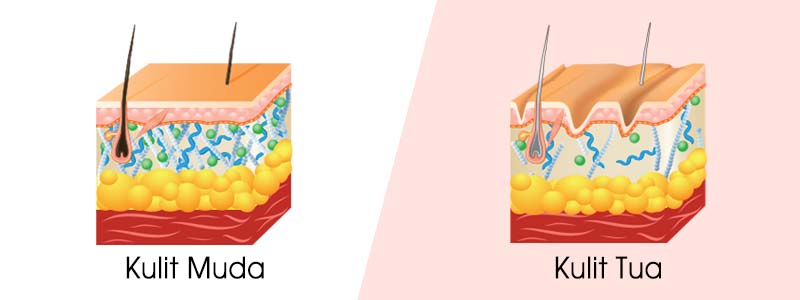 Penghasilan kolagen oleh tubuh merosot beransur-ansur pada usia 25-30 tahun, dan semakin teruk melewati usia 30 tahun. Seterusnya, tahap kolagen kulit akan semakin menurun sebanyak 1-2% setiap tahun, menjadikan kulit kian nipis dan lemah. Penghasilan elastin turut terjejas, dan kulit semakin tidak berupaya mengekalkan kelembapannya.
