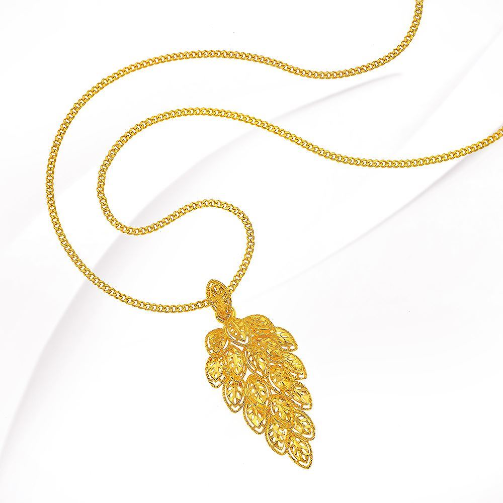 It features layers after layers of intricately crafted leaves forming a shape of a glamourous pendant.