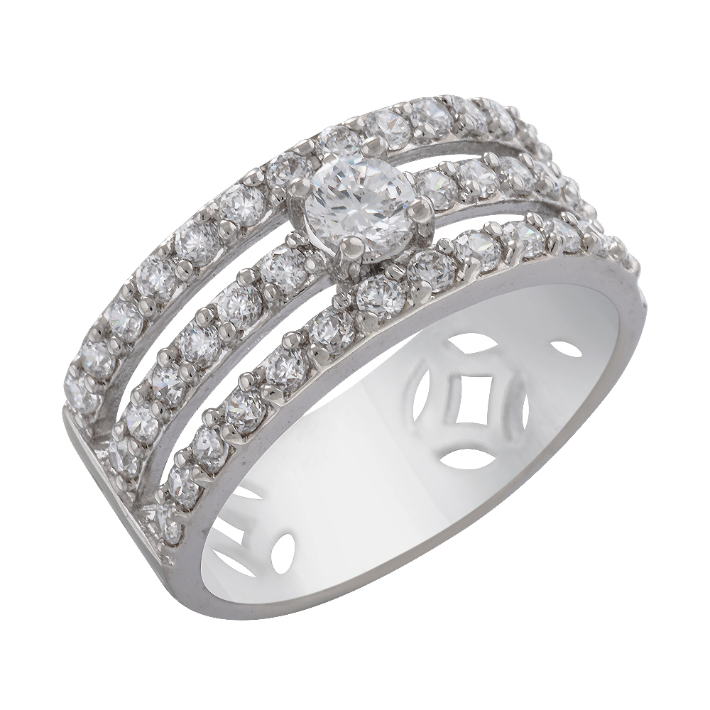 Cincin ini bercirikan 3 barisan tatahan cubic zirconia jernih yang kecil dan sebutir yag besar di tengah-tengahnya yang berkilauan dengan setiap pergerakan!