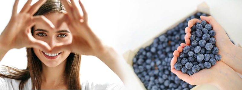 Pelbagai kajian yang telah dijalankan di Eropah telah merekodkan ekstrak bilberi dapat meningkatkan ketajaman pandangan, mengurangkan ketegangan mata dan menggalakkan penyesuaian pantas kepada kegelapan, pada waktu malam. Kesan berfaedah terhadap mata ini didapati berkaitan dengan kehadiran antosianin yang berkepekatan tinggi di dalam bilberi. Antosianin menyokong dan melindungi struktur kolagen di dalam saluran darah pada mata, menjadikan kapilari sihat dan kuat untuk membawa zat penting ke setiap otot dan saraf pada mata.