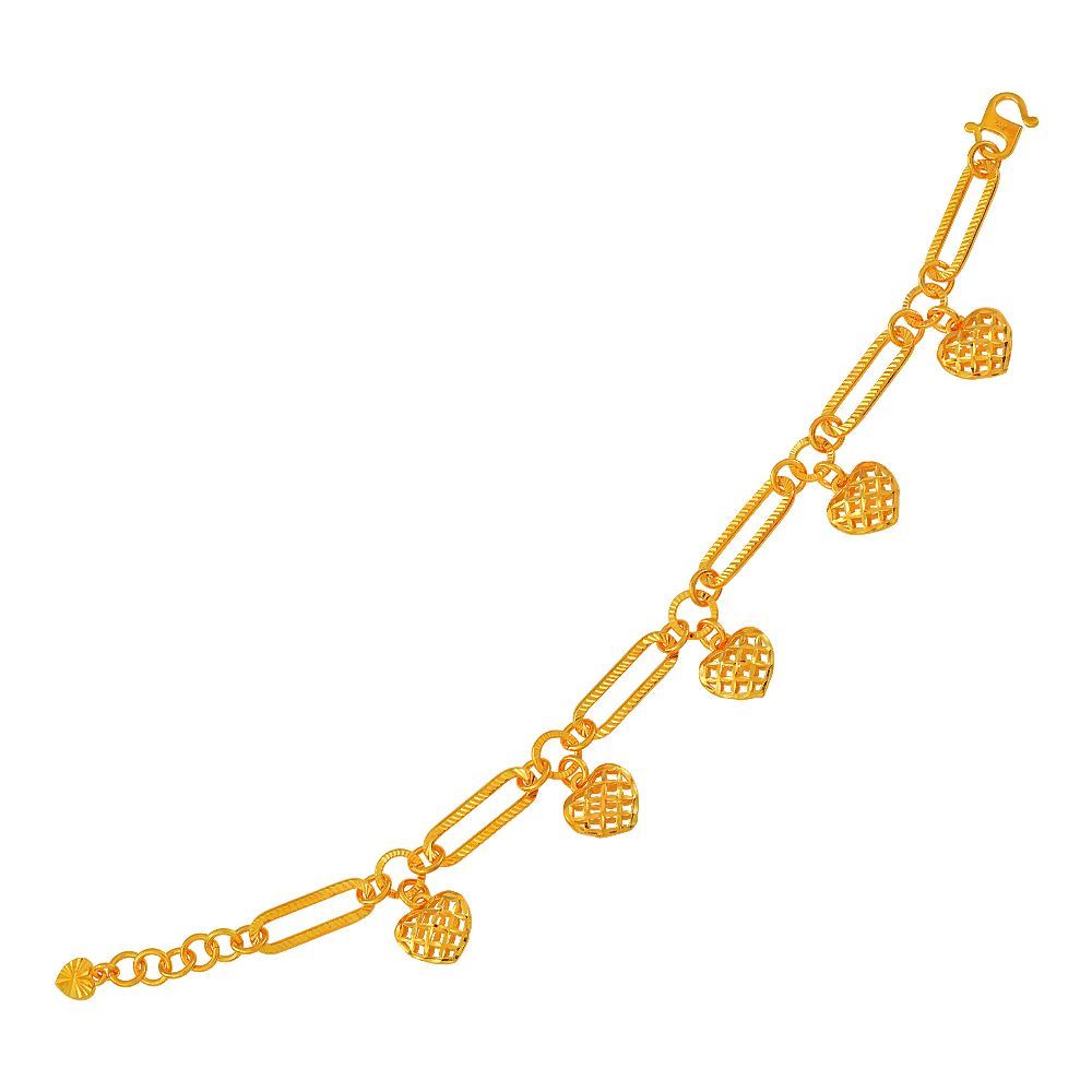 This scored oval chain connection look with 5 perforated puffy heart charms make up a unique 'paper clips' chain.