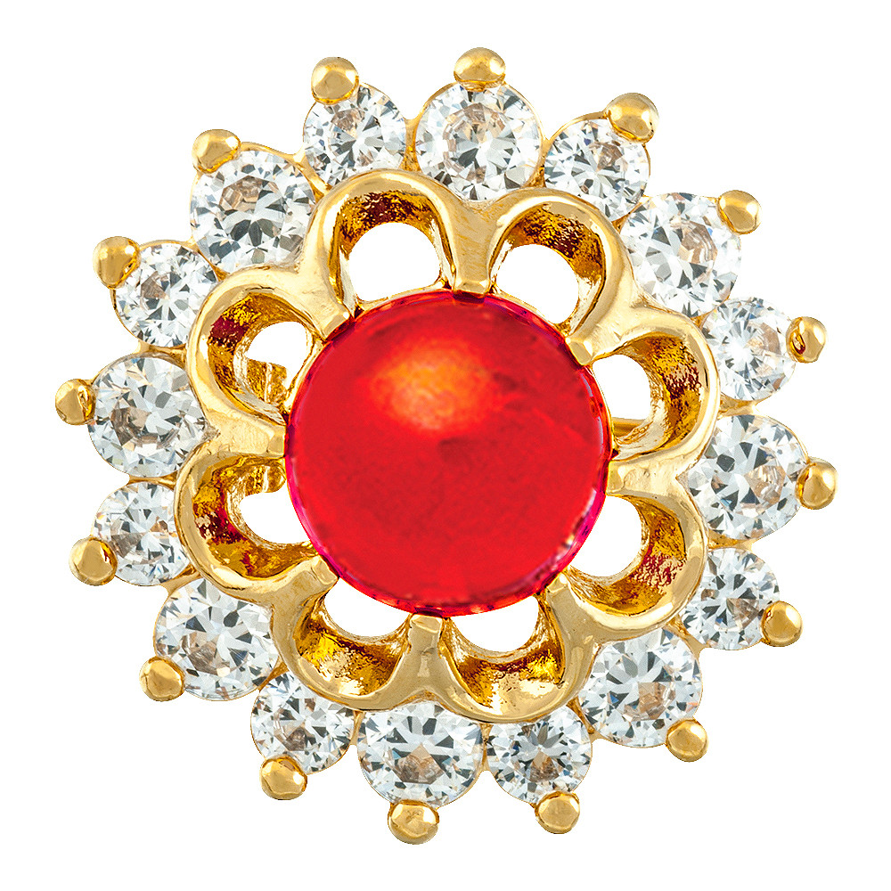 Red CZ Flower Brooch Gold Plated