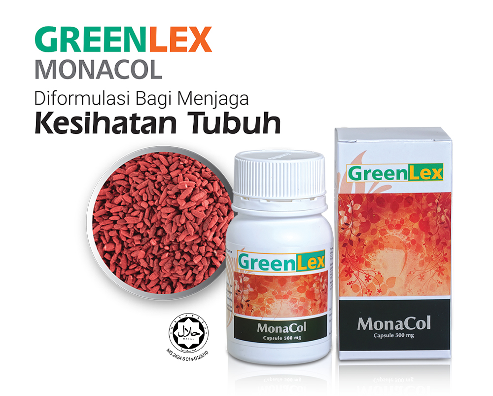 The formulation of GREENLEX MONACOL consists of red yeast rice which is made from yeast (Semen Monascus purpureus) grown on rice. Red yeast rice is a supplement traditionally consumed to maintain health.