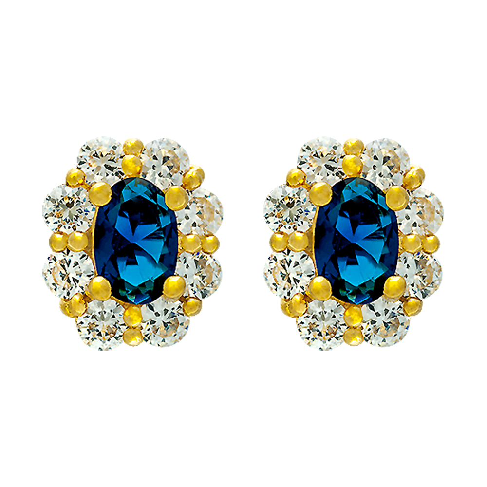 Each earring features a vibrant oval blue cubic zirconia centre surrounded by 8 clear ones.