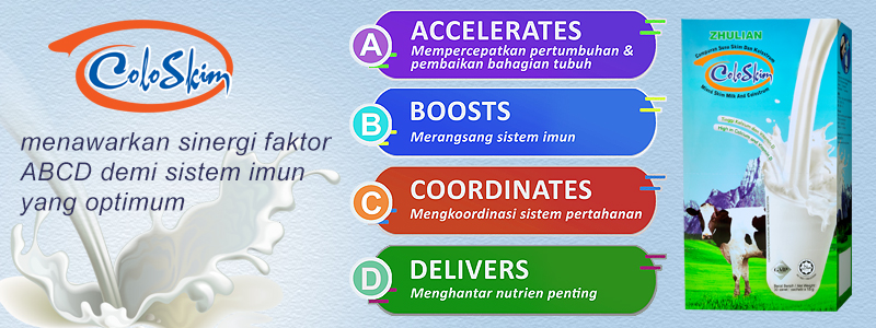 Melalui formulasinya yang sarat dengan pelbagai nutrien terutamanya PRP, faktor-faktor imun dan pertumbuhan serta pelbagai vitamin dan mineral, Coloskim menawarkan faktor ABCD yang yang bertindak secara sinergi bagi menyokong dan menyelaras sistem imun serta pertumbuhan dan perkembangan tubuh yang sihat.