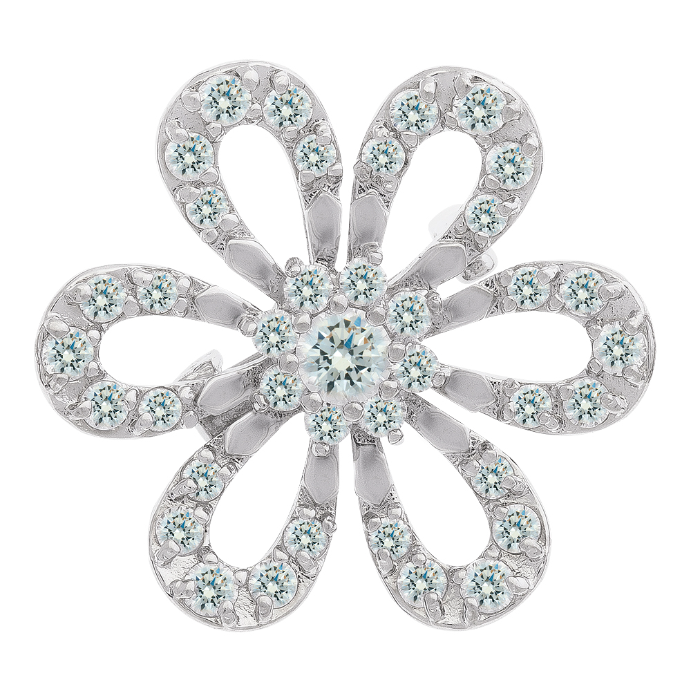 CZ Outlined Petals Flower Brooch Rhodium Plated