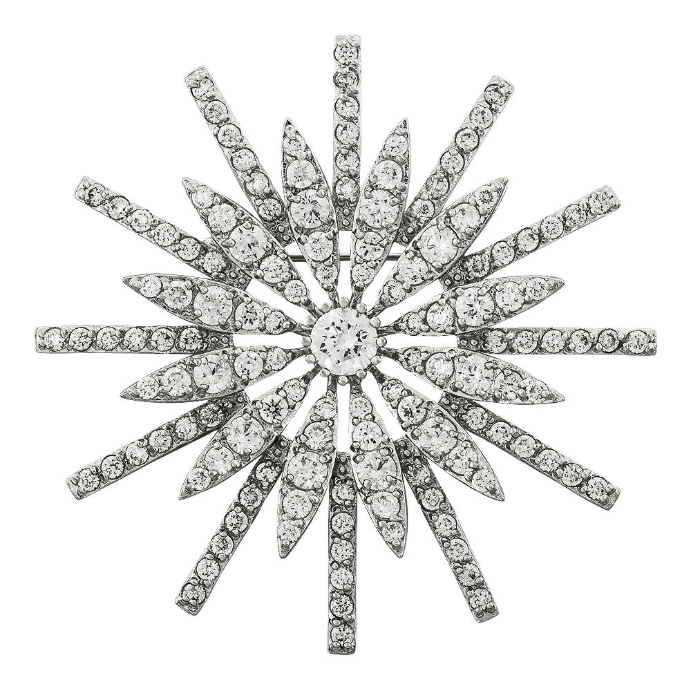 This sparkling brooch has 132 little cubic zirconias beautifully lined toward the centre, bigger cubic zirconia.