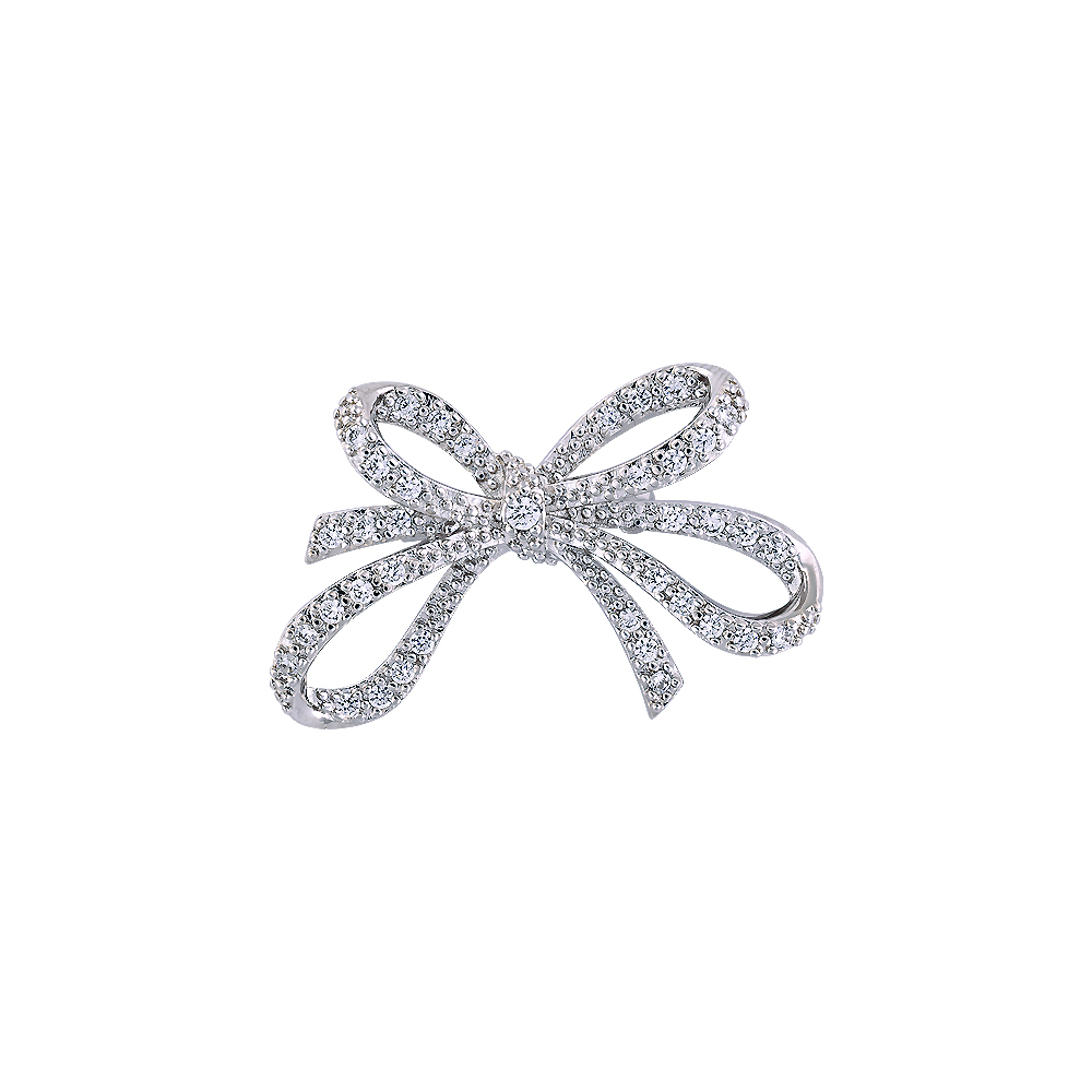 Small Double Ribbon Bow Brooch Rhodium Plated