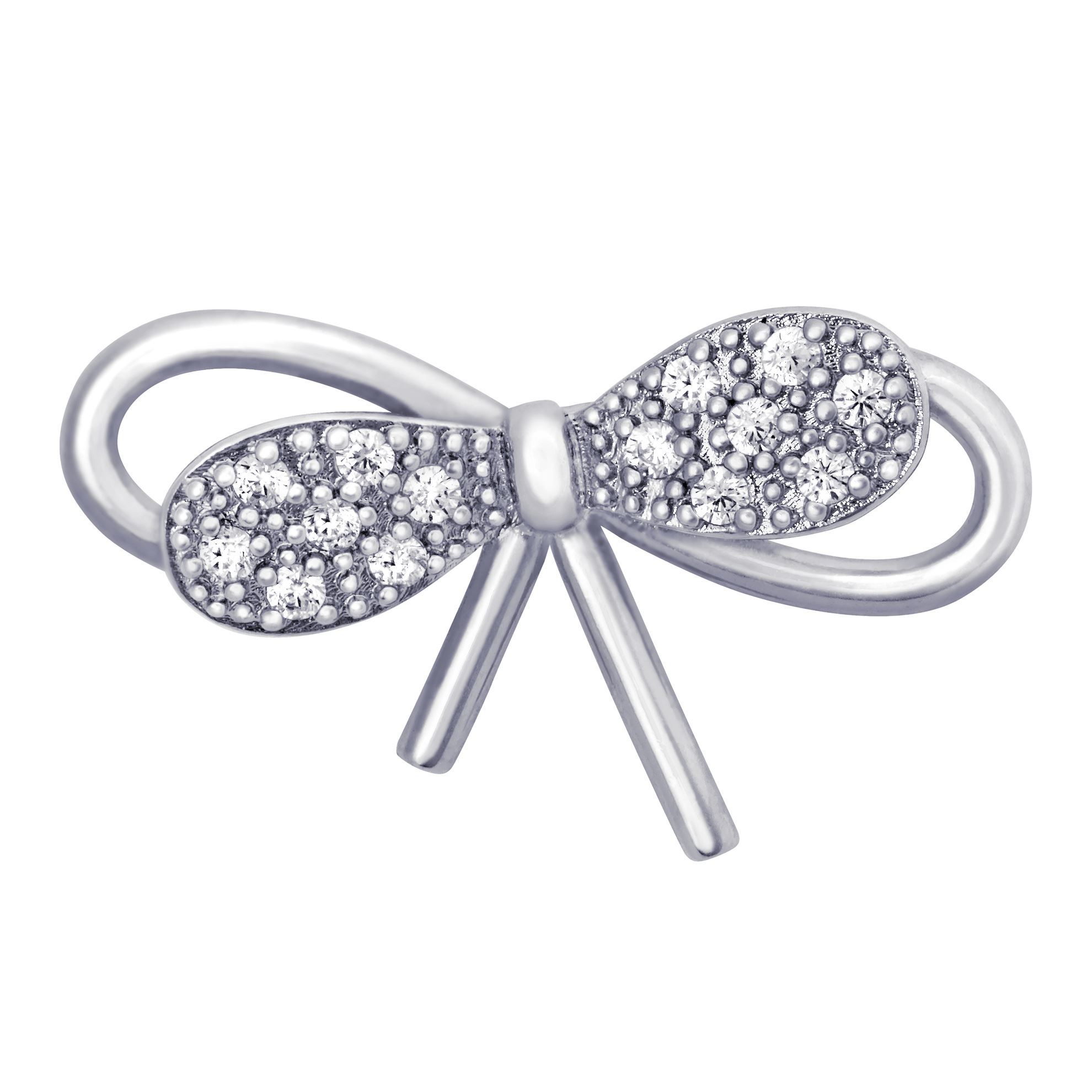 Cute Bow Mini Brooch Rhodium Plated with CZ