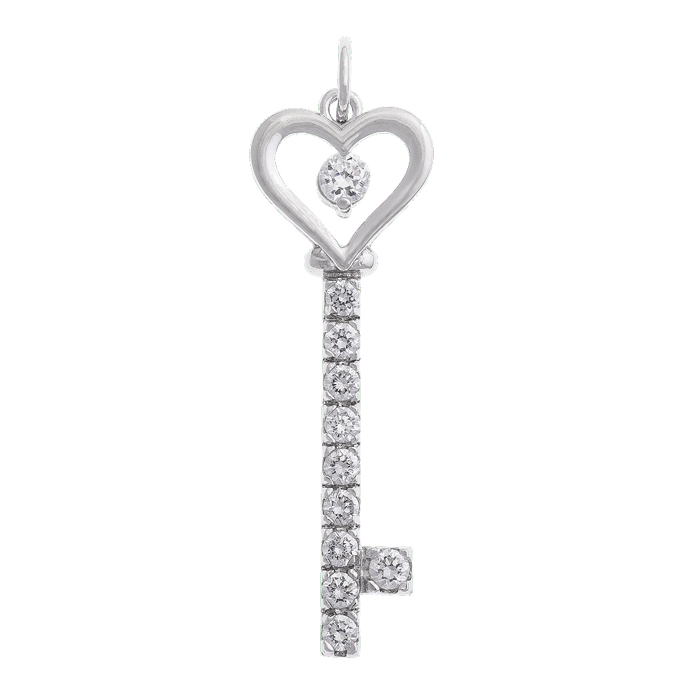 Love Heart Key Pendant Rhodium Plated