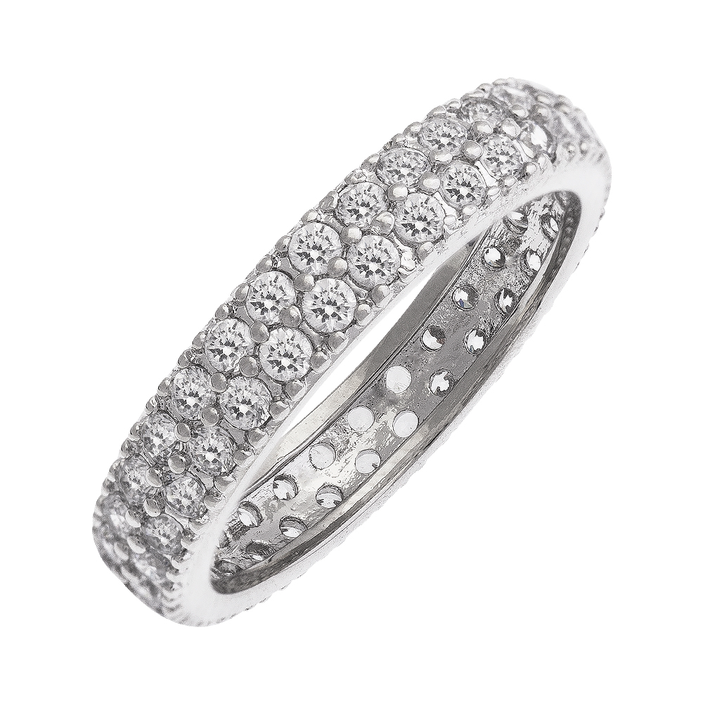 An infinity ring, beautifully set with a continuous 2 rows of cubic zirconias to symbolize a never-ending love!