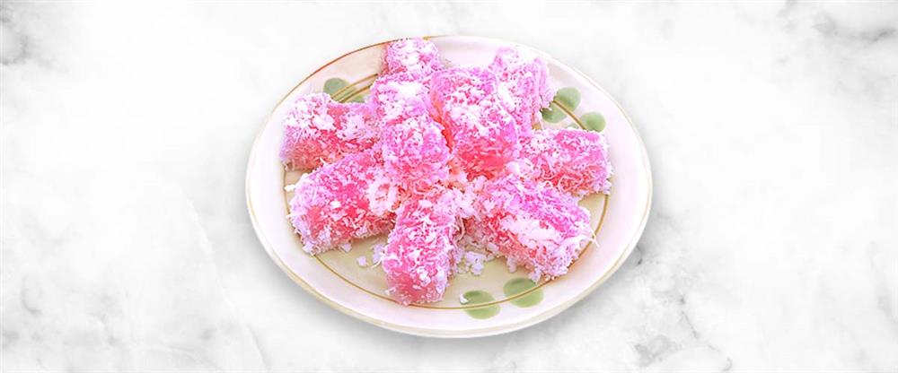- After it is cooled, cut sago to desired size and coat with grated coconut which has been mixed with salt. (The grated coconut and salt should be steamed for awhile to prevent from stale.)